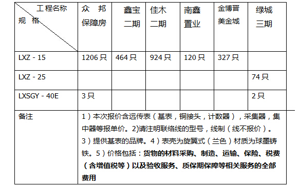 二、工程名稱:眾邦黃金山企業(yè)小區(qū)保障房,鑫寶磁湖南郡二期,佳木二期,綠城玉蘭花園三期戶表工程, 南鑫置業(yè), 金博晉美金城
