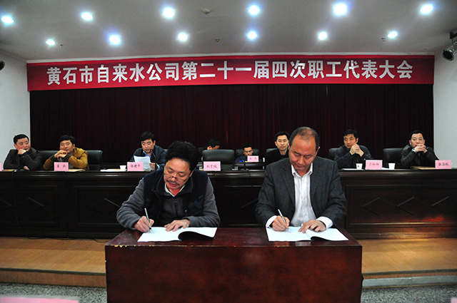 經(jīng)過職工代表們的認真審議,會中,職代表通過了《公司工作報告》、《關(guān)于建設(shè)供水管網(wǎng)地理信息系統(tǒng)的議案》、《關(guān)于規(guī)范發(fā)放各項津貼、補貼及職工福利工作的議案(草案)》、《關(guān)于修訂職工交通補貼管理辦法的議案》、《關(guān)于提供職工早餐的議案》、和《關(guān)于調(diào)整退休職工計劃生育獎勵標準的議案》;并對該公司領(lǐng)導班子及班子成員進行了民主評議;最后,劉總經(jīng)理對職工代表提出在生產(chǎn)經(jīng)營、職工培訓、智能信息的運用、職工福利等幾個方面的意見和建議進行了解答;他代表公司與各基層單位簽定了《2015年度量質(zhì)化考核責任書》、《2015年度績效考核責任書》。