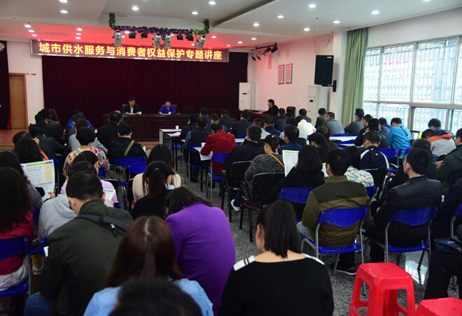 為進(jìn)一步提高“兩學(xué)一做”學(xué)習(xí)教育實(shí)效性和針對(duì)性,10月27日下午,公司在二樓會(huì)議室舉辦“城市供水服務(wù)與消費(fèi)者權(quán)益保護(hù)”專題講座,邀請(qǐng)市消費(fèi)者委員會(huì)柯佳玲秘書長(zhǎng)作專題宣講。公司黨委書記余曦同志主持講座,公司客服中心、經(jīng)營(yíng)銷售公司、管網(wǎng)維護(hù)公司、市場(chǎng)開發(fā)辦、改水辦等窗口服務(wù)單位、部門的干部職工共80余人參加了此次講座。