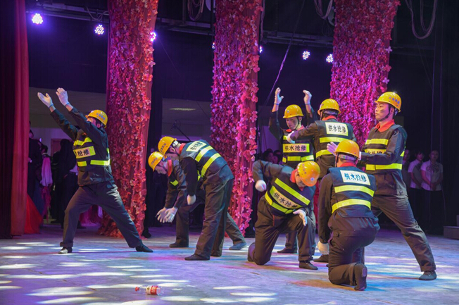 節(jié)目籌備期間,公司領(lǐng)導高度重視,三個節(jié)目均安排專人負責協(xié)調(diào)指導,要求公司工會的同志們挑選優(yōu)秀的青年組建演出隊伍。在公司各基層單位的積極配合下,挑選出的青年職工克服演出時間緊、任務(wù)重的困難,齊心協(xié)力排練好演出節(jié)目。比如水廠運行班的職工,剛剛下了夜班,顧不上休息,就投入到緊張排練中;有的抄表收費人員,為了工作和排練兩不耽誤,在寒冷的冬天早上6點鐘就出門抄表了……正是這樣一群不怕吃苦,勤奮認真的青年,在演出過程中激情表演,最終音詩畫《決戰(zhàn)冰雪》榮獲二等獎。