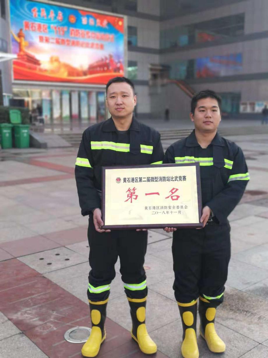 公司參加黃石港區(qū)微型消防站比武競(jìng)賽獲第一名