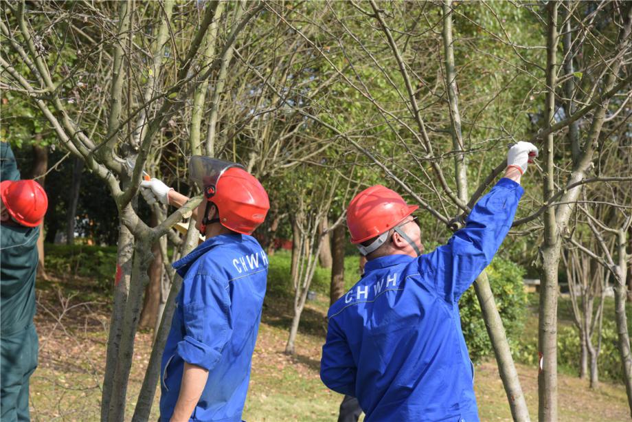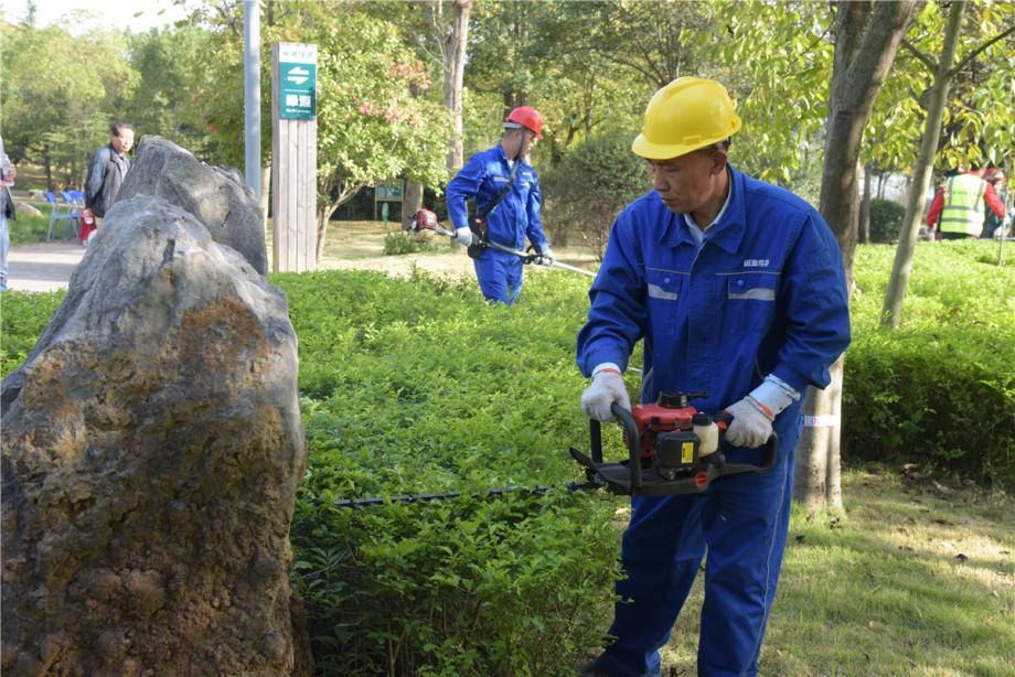下午,園林綠化實操比賽在磁湖岸邊綠化帶舉行,11名選手經(jīng)過抽簽,隨機分配比賽樹木,進行喬木、綠籬、灌木等修剪項目的比拼。