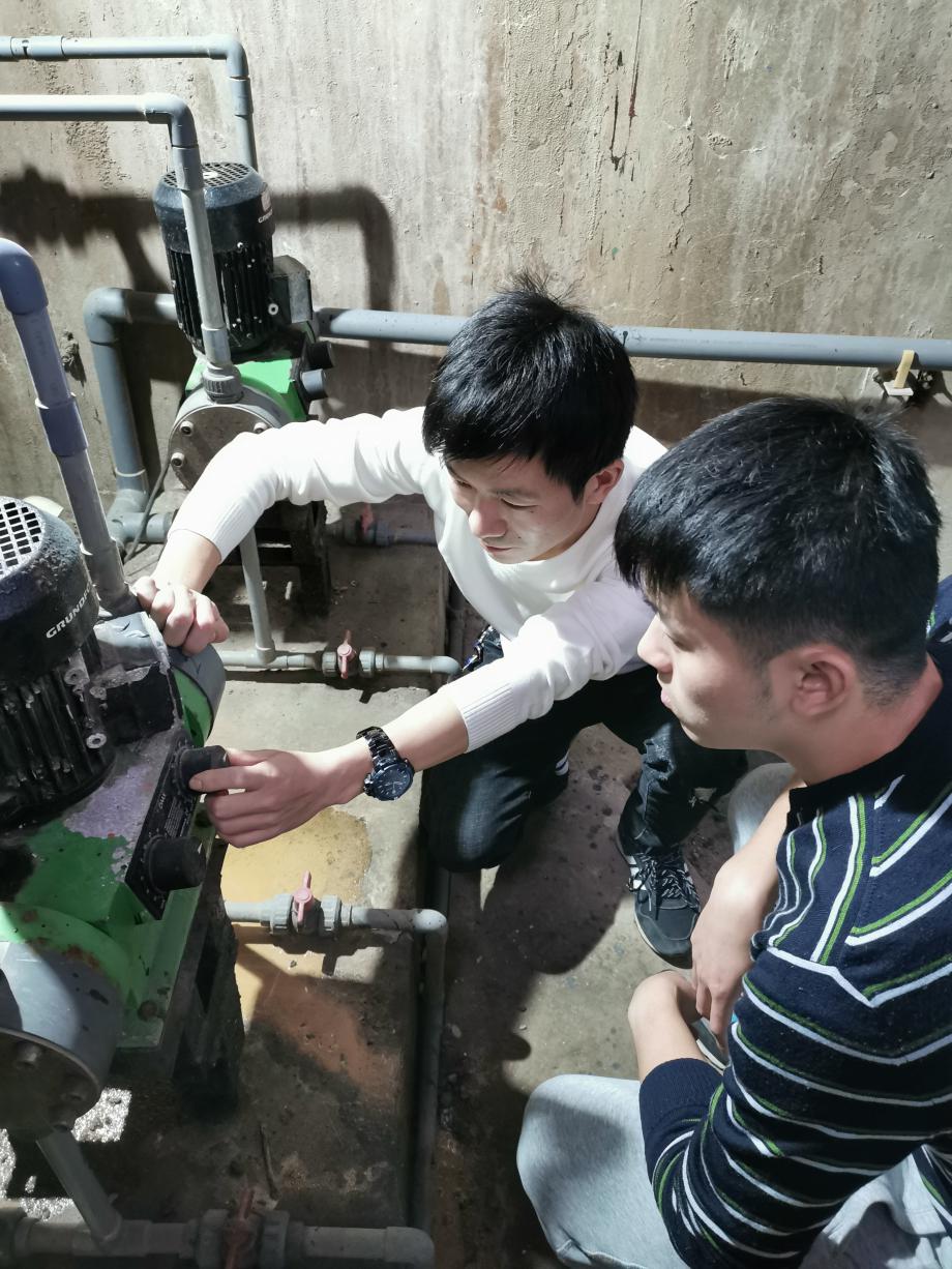 圖為競(jìng)賽申創(chuàng)對(duì)象王家里水廠生產(chǎn)技術(shù)科科長嚴(yán)志勇發(fā)揮“傳幫帶”作用,帶領(lǐng)青工進(jìn)行技術(shù)改造。