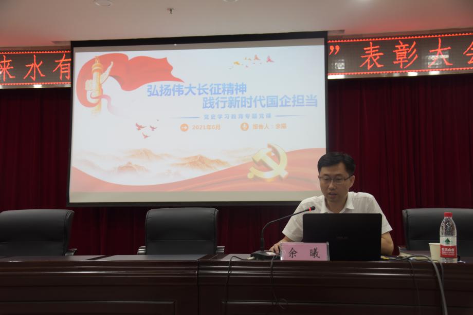 公司黨委書記、董事長余曦同志以《弘揚(yáng)偉大長征精神 踐行新時代國企擔(dān)當(dāng)》為題講授黨課,生動的回顧了長征的宏偉歷程,從實事求是、密切聯(lián)系群眾、艱苦奮斗、愛國愛人民等四個方面深刻剖析了長征精神內(nèi)涵,并結(jié)合公司工作實際,強(qiáng)調(diào):一是要堅定理想信念,踐行初心使命;二是堅持艱苦奮斗,全力保障民生;三是堅持實事求是,深化改革轉(zhuǎn)型;四是深化作風(fēng)建設(shè),永葆黨員本色。