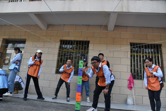 緊接著,大家以小組為單位參與《步步高升》、《環(huán)游世界》、《共繪藍圖》、《定向?qū)殹返雀傎愴椖?。大?/span>積極參與,熱情高漲,相互支持,相互鼓勵,團結(jié)協(xié)作,你追我趕,圓滿完成了每一項比賽。