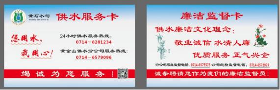 “您用水,我用心!誠摯聘請您作為我們的廉潔監(jiān)督員!我們竭盡所能為用戶安全用水保駕護航” 黃金山供水分公司紀檢委員葉翔主動點對點上門,向供水區(qū)內(nèi)企業(yè)誠意遞上《供水服務(wù)廉潔監(jiān)督卡》。在優(yōu)化營商環(huán)境國家測評中,黃石獲得“用水指標”考核優(yōu)秀等次,“用水費用指標”獲評滿分,成為全國最佳表現(xiàn)……,細細回想,這是從一場名為“廉潔優(yōu)質(zhì)服務(wù)”競賽活動開始的。