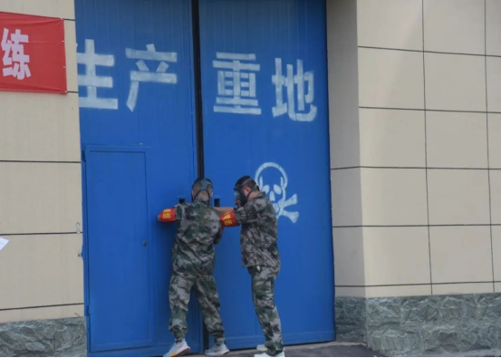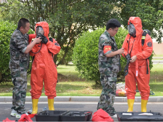 隨著一聲令下,演練拉開序幕。氯氣泄漏報警鈴聲響起,氯氣泄漏吸收裝置成功自動啟動,值班人員迅速到場巡視,并通過通訊裝置向指揮長報告現(xiàn)場情況。經(jīng)研判,花湖水廠立即啟動《氯氣泄漏事故應急預案》,搶修組、警戒組、醫(yī)護組奔赴現(xiàn)場。警戒線迅速擺放到位,搶修人員穿戴好防化服、佩戴好正壓式空氣呼吸器,攜帶專用工具進入泄漏現(xiàn)場,進行搶險。經(jīng)過系列應急處置,應急響應解除,花湖水廠恢復正常生產。演練結束后,市水務集團副總經(jīng)理袁全保對本次演練活動作點評,針對演練環(huán)節(jié)存在的不足,提出整改意見。