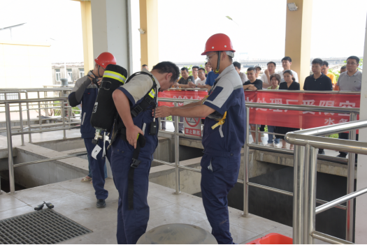 為認真貫徹落實安全生產(chǎn)月工作要求,切實加強全體員工對受限空間作業(yè)安全的認識和應(yīng)急處置能力, 6月17日上午,緊扣“人人講安全 個個會應(yīng)急-暢通生命通道”安全生產(chǎn)月主題,市水務(wù)集團污水公司在花湖污水處理廠組織開展受限空間應(yīng)急演練活動。集團領(lǐng)導(dǎo)及各基層單位員工共計30余人觀摩了本次活動。