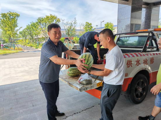驕陽(yáng)似火,伏天正盛,酷暑“烤”驗(yàn)著堅(jiān)守在戶外的一線職工。為扎實(shí)做好防暑降溫工作,把集團(tuán)的關(guān)心關(guān)愛(ài)送到干部職工的心坎上。7月25日上午,市水務(wù)集團(tuán)兵分四路,深入基層一線和在建工地,開(kāi)展“送清涼”走訪慰問(wèn)活動(dòng),為高溫下堅(jiān)守崗位的職工送上礦泉水、西瓜、藥品等防暑用品。