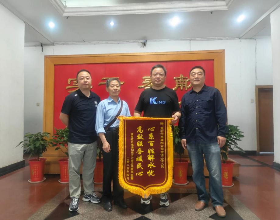 4月11日上午,金棗苑月亮灣13棟五六層居民代表將一面印有“心系百姓解水憂 高效服務(wù)暖民心”的錦旗送至黃石市水務(wù)集團(tuán)客服中心,感謝集團(tuán)徹底解決了困擾居民多年的高層水壓不足問題。據(jù)了解,因管網(wǎng)老舊和地勢因素,該樓棟五、六層住戶長期面臨用水難題。高峰期水流如線、熱水器無法啟動(dòng),洗衣做飯等基本生活需求都成困擾。2025年3月,客服中心接訴即辦,積極響應(yīng)群眾訴求,組建專班實(shí)地勘察,迅速制定改造方案,經(jīng)過為期2天的緊張施工,徹底解決了小區(qū)居民的吃水難題??头行闹魅螀纬航舆^錦旗時(shí)表示:這面錦旗既是榮譽(yù)更是鞭策,下一步,黃石水務(wù)集團(tuán)將繼續(xù)堅(jiān)持“用戶至上”的服務(wù)理念,在工作中用心、用情、用力為用戶創(chuàng)造良好的用水環(huán)境,真正把優(yōu)質(zhì)服務(wù)落實(shí)在行動(dòng)上。